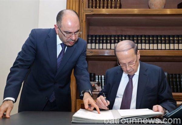 وقع رئيس الجمهورية العماد ميشال عون ورئيس الحكومة حسان دياب مساء اليوم الثلاثاء، على مرسوم تشكيل الحكومة في قصر بعبدا.