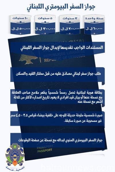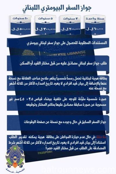 Posted on 31 يناير، 2020 by adminالمستندات المطلوبة للاستحصال على جواز سفر لبناني بيومتريالامن العام: اليكم منشوران يوضحان المستندات المطلوبة للاستحصال على جواز سفر لبناني بيومتري أو إبدال جواز سفركم القديم بجواز سفر بيومتري جديد #جوازالسفراللبناني #تضحية_خدمة لبنان