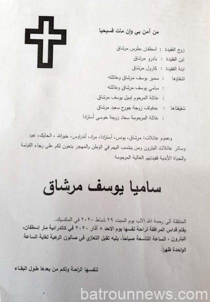 وفاة “ساميا مرشاق” في المكسيك وقداس مرافقة في البترون الاحد