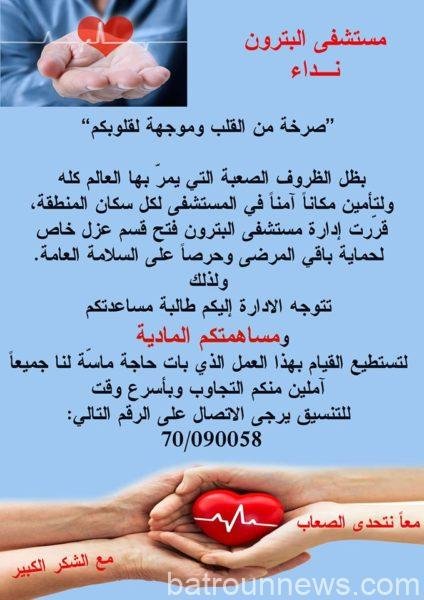 نداء من مستشفى البترون: بحاجة لمساهمتكم المادية