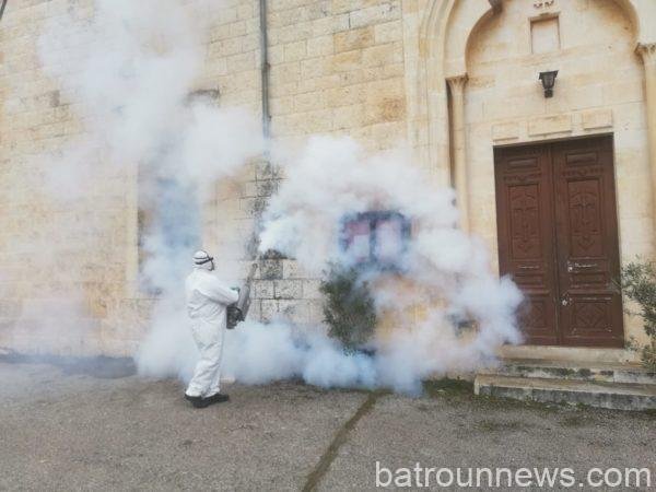 وتشمل الحملة تعقيم الكنائس وصالاتها والقاعات العامة بالاضافة الى حملات التوعية حول الفيروس وكيفية الوقاية منه.