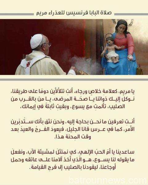 ٣- نختم بتلاوة الابانا على نية قداسة البابا فرنسيس، عبر مكبرات الصوت إذا وجدت.