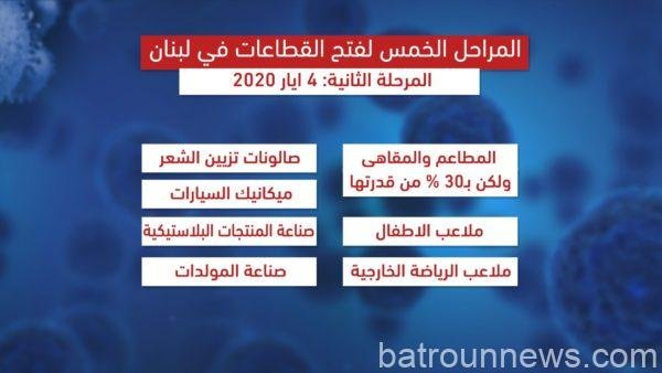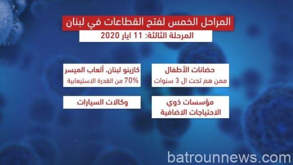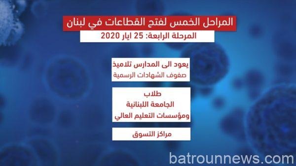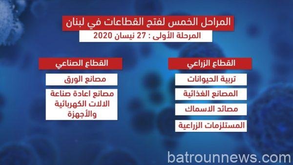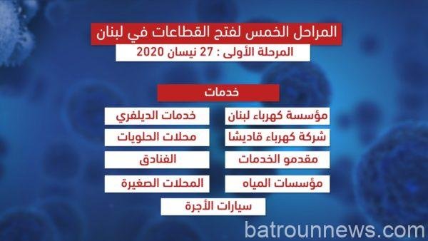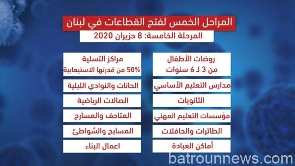 جداول المراحل الخمس لفتح القطاعات في لبنان