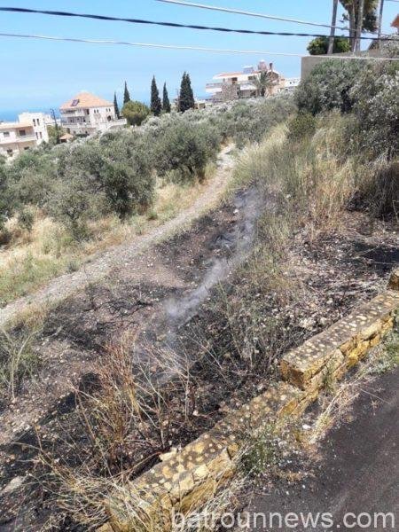 اخمد عناصر من الدفاع المدني ظهر اليوم حريقاً شب في أعشاب يابسة و اشجار من الزيتون في حامات -البترون.