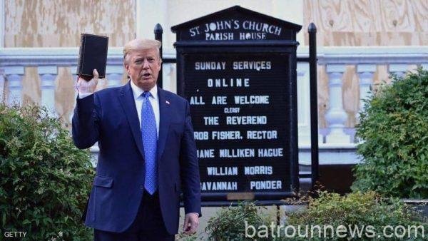 وكان ترامب سار من البيت الأبيض في منطقة أُخليت من أجله إلى كنيسة القديس يوحنا الأسقفية حيث حمل إنجيلا بينما كانت الصور تلتقط له مع ابنته إيفانكا ووزير العدل وليام بار.