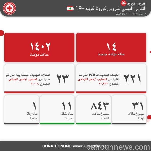 كورونا: تقرير الصليب الاحمر اللبناني اليوم الخميس