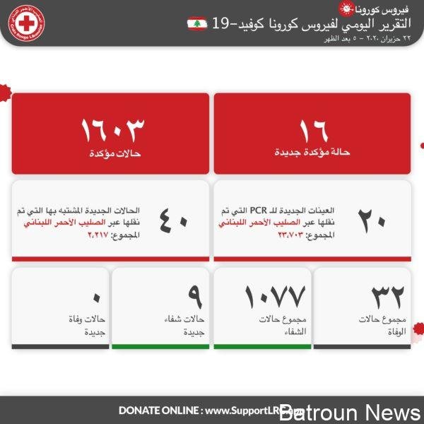 كورونا: تقرير الصليب الأحمر اللبناني اليوم الإثنين