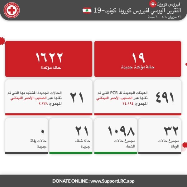 كورونا: تقرير الصليب الأحمر اللبناني اليوم الثلاثاء