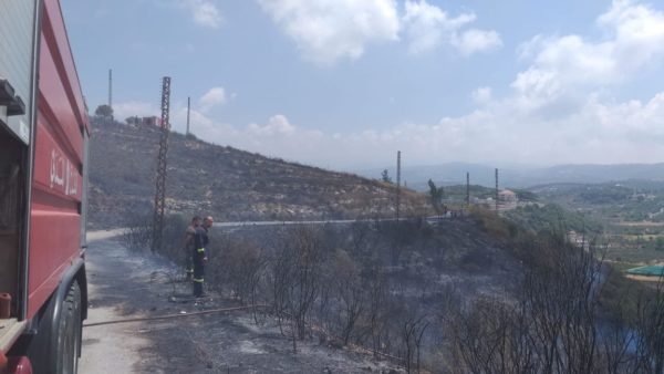 أخمد عناصر من الدفاع المدني حريق شب في اعشاب يابسة في بجدرفل – البترون.