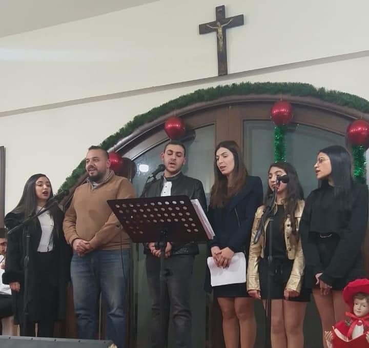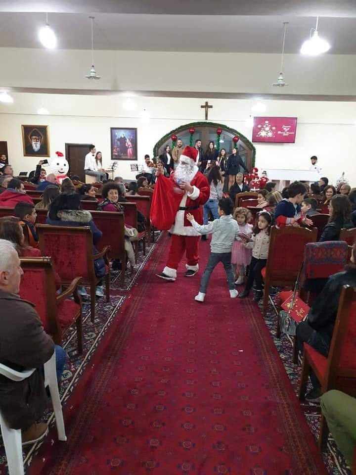 ثم قدم المرنمون باقة من الترانيم الميلادية المحلية والعالمية. وفي الختام وزع “بابا نويل”أكياس الحلوى على الاطفال.