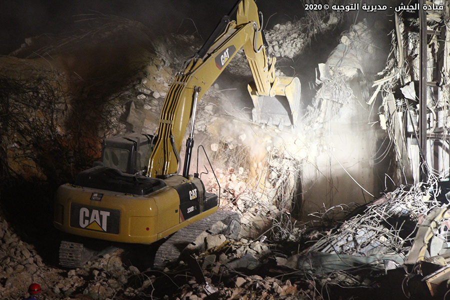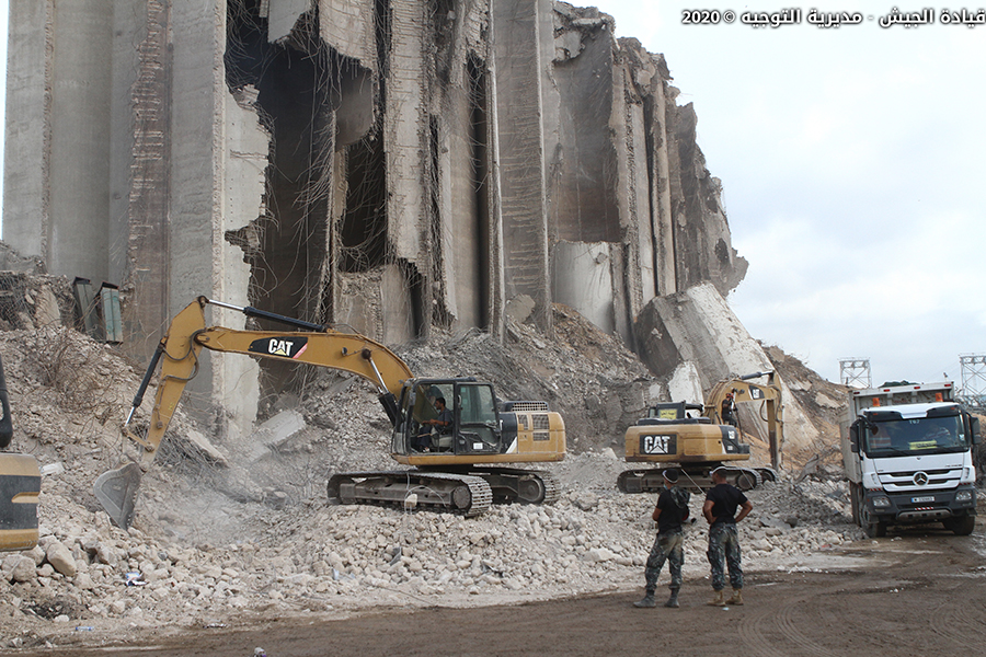 على صعيد آخر قام فريق متخصص من فوج الهندسة بإزالة ما تبقى من حائط الإهراءات المتصدع الموجود في بقعة عمل فريق الإنقاذ الروسي، نظراً للخطر الكبير الذي يشكله هذا الحائط على حياة عناصر الإنقاذ، الذين يواصلون العمل بهدف الوصول إلى غرفة عمليات الإهراءات الواقعة تحت الأرض، والتي يُتوقع العثور فيها على مفقودين.