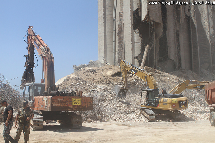 وفي إطار عمليات رفع الأنقاض، فقد تم رفع حوالي أربعة آلاف متر مكعب من الباطون المسلح والردميات والحبوب التي كانت موجودة داخل الإهراءات قبل الإنفجار.