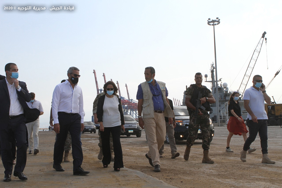 في إطار متابعتها اليومية لتداعيات الإنفجار في مرفأ بيروت، تفقدت نائب رئيس مجلس الوزراء وزيرة الدفاع المستقيلة زينة عكر المرفأ، بحضور وزير الإقتصاد المستقيل راوول نعمة ووزير الأشغال العامة والنقل المستقيل ميشال نجار، وحضر أيضاً رئيس مجلس إدارة المرفأ والمدير العام الجديد باسم القيسي والمدير الإقليمي لبرنامج الأغذية العالمي مهند هادي وممثل البرنامج في لبنان عبد الله الوردات ومدير العمليات في البرنامج عامر داوودي ورئيس الإتحاد العمالي العام بشارة الأسمر.