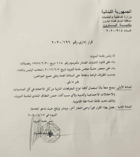 بلدية البترون تمنع استعمال المفرقعات النارية