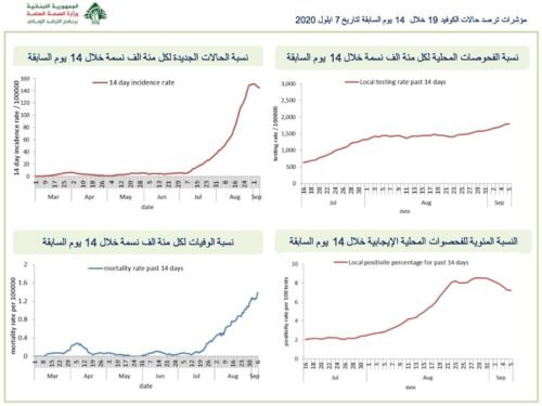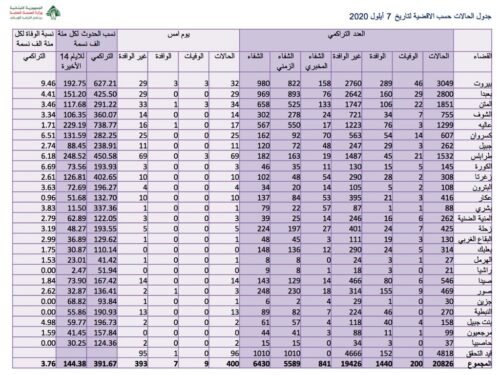 أعلنت وزارة الصحة العامة تسجيل 400 اصابة كورونا جديدة رفعت العدد التراكمي منذ ٢١ شباط الماضي الى 28426 حالة.
