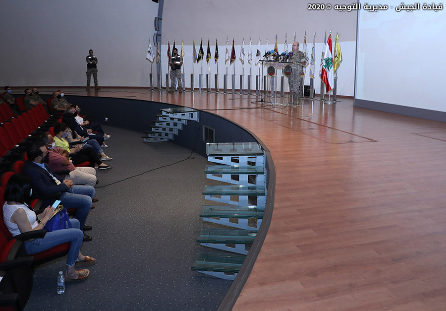 وألقى رئيس قسم الصحافة والعلاقات العامة العقيد الركن الياس عاد إيجازاً تناول عمل لجان المسح وهيكليتها وكيفية تنفيذ مهماتها من خلال فريق عمل عسكري وُزّع على 250 لجنة بلغ عدد عناصرها ألف عنصر بين ضابط ورتيب، بالتعاون مع عدد من المهندسين المدنيين والمتطوعين. وأشار العقيد عاد إلى أن قيادة الجيش والتزاماً منها بالمهلة التي وضعتها سابقاً، قد أنجزت خلال 15 يوماً مهمات مسح الأضرار والتي شملت 85744 وحدة متضررة، موضحاً أن هذه العملية تعتبر كافية ولا حاجة بالتالي إلى إجراء عمليات مسح إضافية من قبل الجهات المانحة. وأعلن أن نتائج عمل اللجان وضعت في متناول جميع الجهات المانحة إذ يمكن للدول الصديقة والمنظمات غير الحكومية والأفراد الراغبين بالتبرع أو الترميم وإعادة الإعمار، الإطلاع على نتائج المسح الدقيق والشفاف الذي اعتمدته المؤسسة العسكرية في مواجهة تداعيات انفجار مرفأ بيروت، وذلك إنفاذاً للقرار الصادر عن رئاسة مجلس الوزراء الذي مدّد لغاية 31/12/2020 تكليف الجيش بمتابعة تنفيذ المهام التي أوكلت إلى القيادة العسكرية العليا والمتعلقة بإعلان حالة الطوارئ العامة.