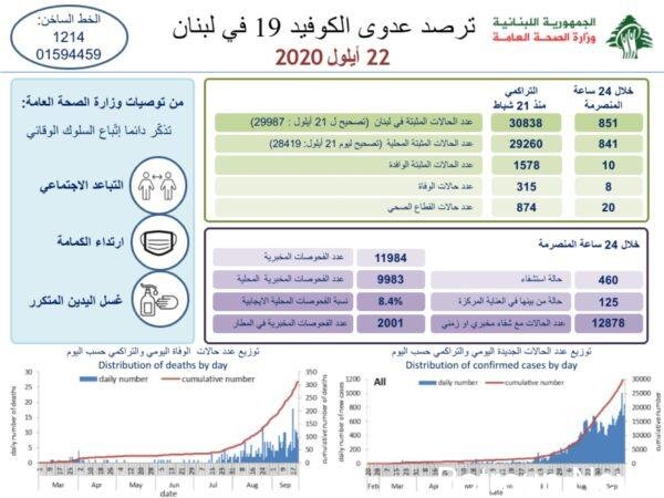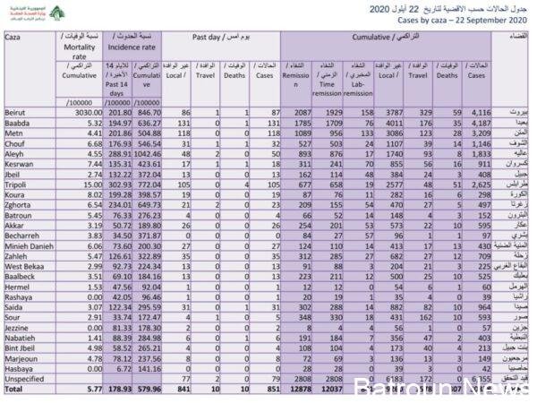Posted on 22 سبتمبر، 2020 by adminوزارة الصحة: 4 إصابات كورونا في البترون.. هكذا توزعتأعلنت وزارة الصحة العامة تسجيل 851 اصابة كورونا جديدة رفعت العدد التراكمي منذ 21 شباط الماضي الى 30838 حالة.وفي البترون، سجل التقرير 4 إصابات في القضاء 3 في شكا وواحدة في مدينة البترون. أخبار البترون