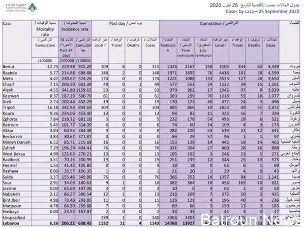 وسجل ااتقرير 6 إصابات في البترون، توزعت على بلدات: شكا، جران وعبرين: