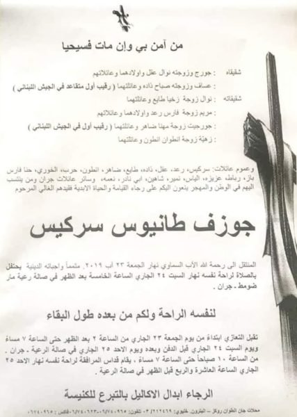 وفاة جوزف طانيوس سركيس – جران