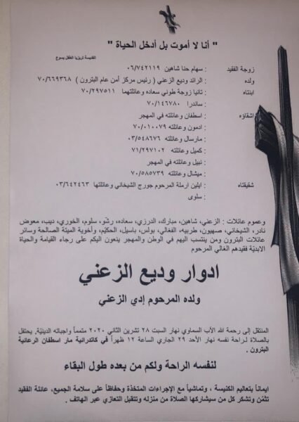 وفاة إدوار وديع الزعني