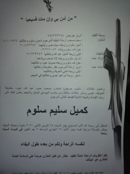وفاة كميل سليم سلوم