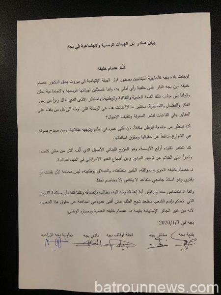 بلدة بجة تتضامن مع الدكتور عصام خليفة