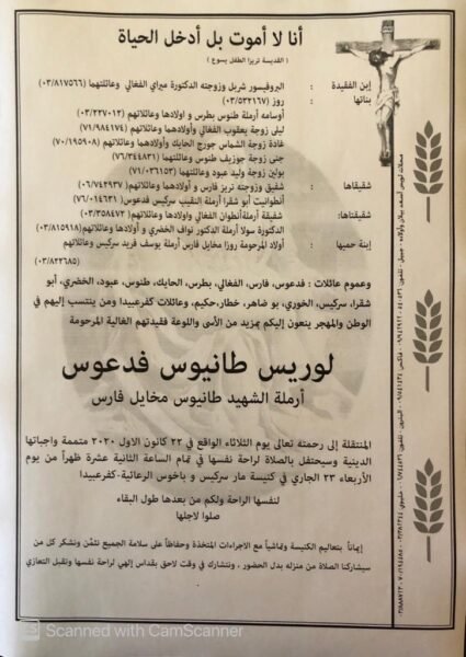 وفاة لوريس طانيوس فدعوس