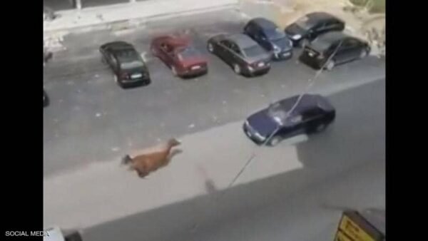 وحسب مقطع فيديو انتشر على مواقع التواصل الاجتماعي، فإن الحصان الجامح خرج عن السيطرة فيما يبدو، واصطدم بسيارة متحركة ليسقط على الأرض ويقف للحظات، ثم يكمل مسيره لكن ببطء، بالحادث الذي وقع الجمعة.