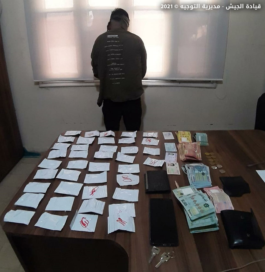 كما أوقفت دورية من المديرية المذكورة في منطقة الدكوانة المدعو (ف.ب) لإقدامه على ترويج المخدرات وحيازته كمية منها، ومحاولة الفرار من أمام الدورية ومقاومة عناصرها.