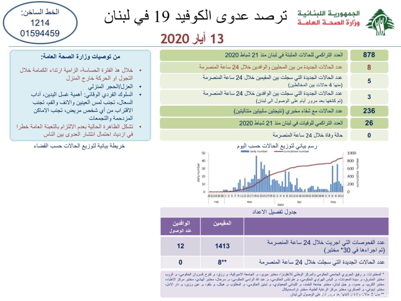 أصدرت وزارة الصحة تقريرها اليومي عن فيروس كورونا وجاء فيه:
