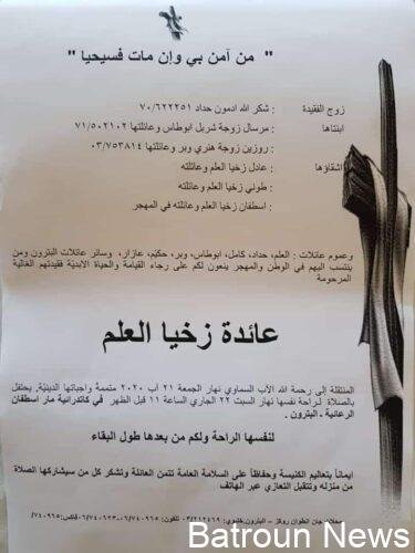 وفاة والدة القائمقام روجيه طوبيا السيدة “وديعة نادر مرعي إيليا”