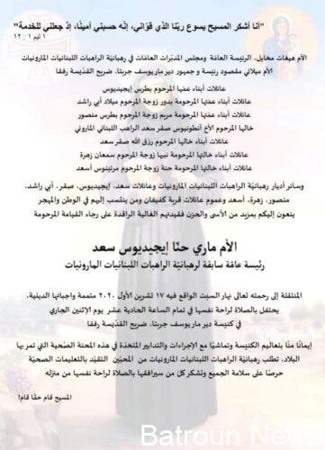توفيت السيدة وديعة نادر مرعي إيليا والدة قائمقام البترون روجيه طوبيا