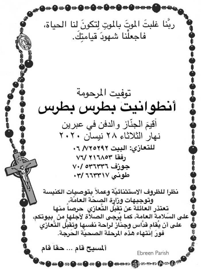 فاجعة ثانية ضربت بلدة تحوم في أقل من 24 ساعة: جوزيت رحلت فجأةأقيمت الصلاة لراحة نفسها ودفنت ظهر اليوم...