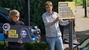 متراجعة عن حكم بالسجن 34 عاماً، السعودية تفرج عن سلمى الشهاب Getty Imagesنشطاء في لاهاي حقوق الإنسان يلوحون بلوحات احتجاجية بعد حكم قضائي سعودي على سلمى الشهاب في يناير/كانون الثاني...