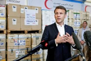 هل تعترف بريطانيا بعد فرنسا بدولة فلسطينية؟ – الإندبندنت AFP via Getty Imagesالرئيس الفرنسي إيمانويل ماكرون متحدثاً لوسائل الإعلام خلال زيارة لمستودعات الهلال الأحمر المصري المخصصة لتخزين المساعدات...