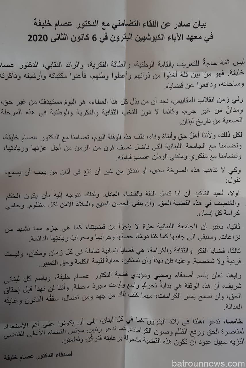 اقامت مجموعة من الاساتذة والطلاب والنقابيين وناشطات وناشطين وقفة تضامنية مع د.عصام خليفة في خيمة الجامعة اللبنانية في ساحة...