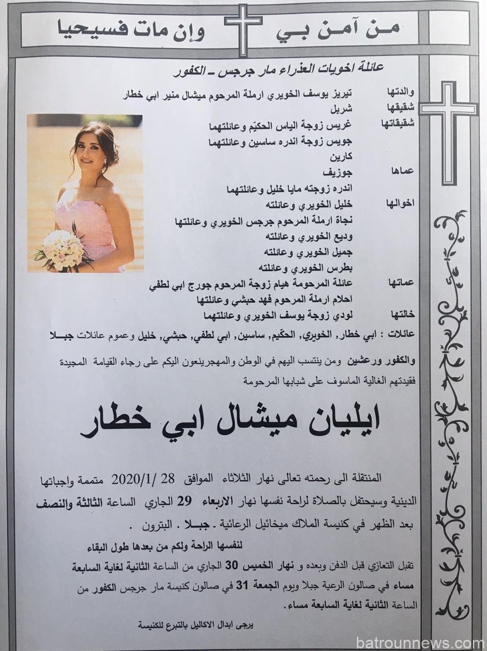 القتيلة على طريق المتن السريع من بسكنتا وليس زغرتا بالرغم من ان الوكالة الوطنية للاعلام ذكرت ان ضحية حادث السير اليوم على اوتوستراد المتن السريع هي من زغرتا...