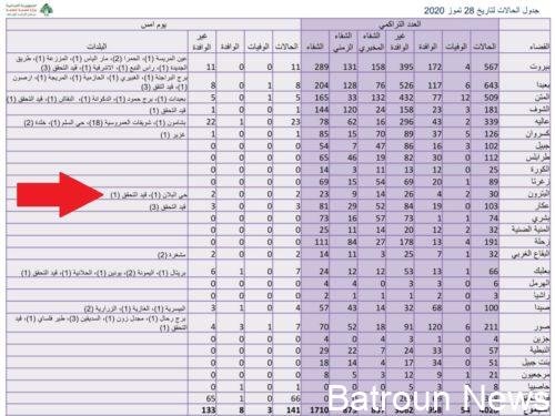 كورونا في البترون: إصابة بالفيروس وإصابة أخرى قيد التحقق حسب تقرير وزارة الصحة اليوم – اعلنت وزارة الصحة العامة تسجيل 141 اصابة كورونا جديدة رفعت العدد التراكمي للحالات المثبتة الى 4023.وورد في الجدول تسجيل إصابة...