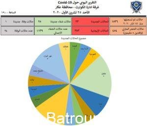 كورونا: 23 إصابة جديدة ووفاة واحدة في عكار سجل التقرير اليومي لغرفة إدارة الكوارث في محافظة عكار، 23 إصابة جديدة بفيروس كورونا وحالة وفاة واحدة، و25 حالة...