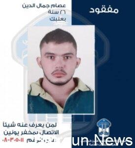 تعميم صورة المفقود عصام جمال الدين صـدر عـن المديريـة العامة لقوى الأمن الداخلي ـ شعبة العلاقـات العامـة البـلاغ التالــي: تعمم المديرية العامة لقوى الأمن الداخلي،...
