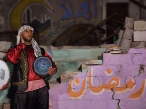 بالصور: بي بي سي ترصد أجواء أول يوم من رمضان في غزة Getty Imagesالمسحراتي يسير في شوارع خام يونس المدمرة لإيقاظ الفلسطينيين لتناول وجبة السحور الأولى في شهر رمضان المبارك، فجر...