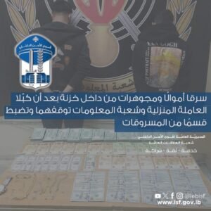 “سوريان” سرقا أموالًا ومجوهرات من داخل خزنة بعد أن كــبّــلا العاملة المنزلية بتاريخ 02-02-2025، ادّعى أحد المواطنين أنّ مجهولين أقدموا على الدّخول الى منزله في بلدة كفر متى – عاليه أثناء...
