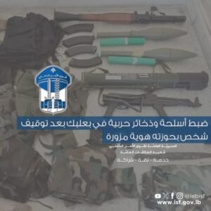 ضبط أسلحة وذخائر حربية في بعلبك بعد توقيف شخص بحوزته هوية مزورة صدر عن المديريّة العامّة لقوى الأمن الداخلي ـ شعبة العلاقات العامّةالبلاغ التّالي: بتاريخ 18-3-2025، اشتبهت عناصر حاجز ضهر البيدر...