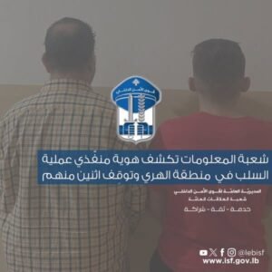 الكشف عن هوية منفّذي عملية السلب في الهري – البترون وتوقيف اثنين منهم بتاريخ 24-03-2025، وفي محلة الهري- شكا، أقدم اربعة ملثمين مجهولي الهويّة يستقلّون سيارة نوع مرسيدس لون زيتي مجهولة رقم...