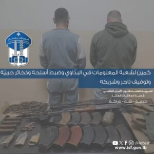 كمين لشعبة المعلومات وضبط أسلحة وذخائر حربيّة وتوقيف تاجر وشريكه في إطار المتابعة اليوميّة التي تقوم بها قطعات قوى الأمن الدّاخلي للحدّ من الجرائم في مختلف المناطق اللّبنانية وملاحقة...