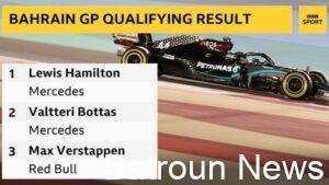 فورمولا 1: لويس هاميلتون ينطلق في سباق البحرين من المركز الأول BBCالتصفيات المؤهلة لبطولة البحرين، لوس هاميلتون في المقدمة يليه فالتري بوتاس ثم ماكس فيرشتابن للمرة العاشرة هذا الموسم، ينطلق...