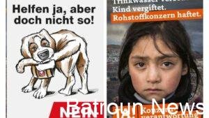 السويسريون يصوتون على قانون يحمل الشركات مسؤولية انتهاكات حقوق الإنسان BBCملصقان دعائيان الأول (اليسار) ضد التشريع المقترح: “ساعد بكل الوسائل ولكن ليس بهذه الطريقة”، والآخر مؤيد: “مياه الشرب الملوثة...