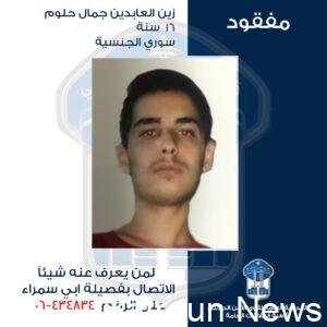 قوى الامن عممت صورة المفقود القاصر زين العابدين حلوم صدر عن المديرية العامة لقوى الامن الداخلي ـ شعبة العلاقات العامةالبلاغ التالي: “تعمم المديرية العامة لقوى الأمن الداخلي، بناء...