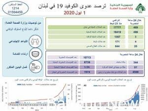 وزارة الصحة: 469 اصابة كورونا و4 حالات وفاة اعلنت وزارة الصحة العامة تسجيل 469 اصابة كورونا جديدة رفعت العدد التراكمي للحالات المثبتة الى 17777 .وجاء في التقرير:...
